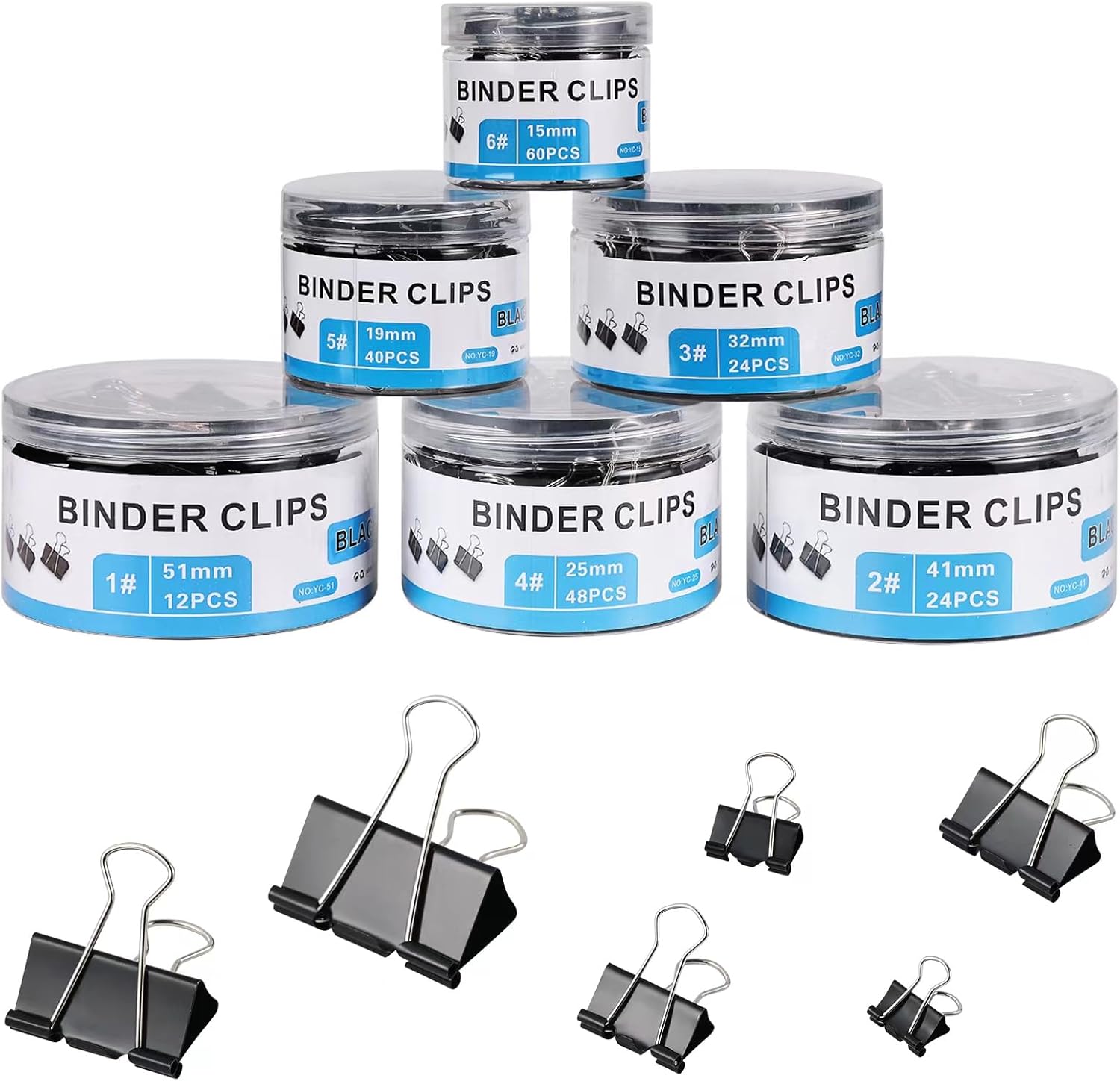 Classic and affordable black metal binder clip set with a sleek design — perfect for school, office, and home use. Includes 6 different sizes to suit all your organizing needs. -